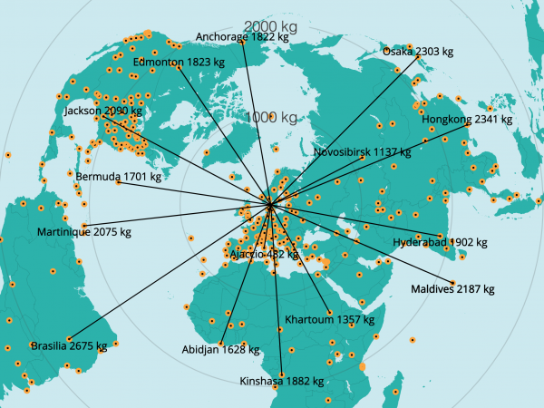 Fyll i antal personer, varifrån och vart du vill åka. Det går också att välja om det är en enkel resa, och hur länge du skall vara borta. Vi söker fram lämpliga färdvägar och visar utsläppen i staplar.